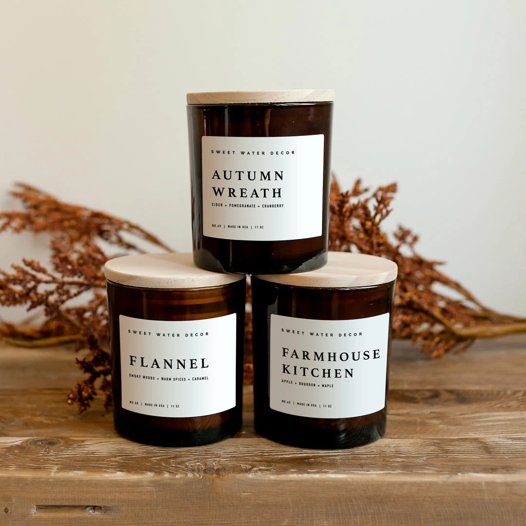 Autumn Wreath is a fruity, citrusy play on apple cider.Β Apple and spice are rounded out with fresh lemon, pomegranate and cranberry for the perfect sweet and tart balance.Β This scented candle will fill your home with a fruity and warm scent to enjoy a crisp fall night.Β You will love this fall candle so much you’ll want to burn it all year!