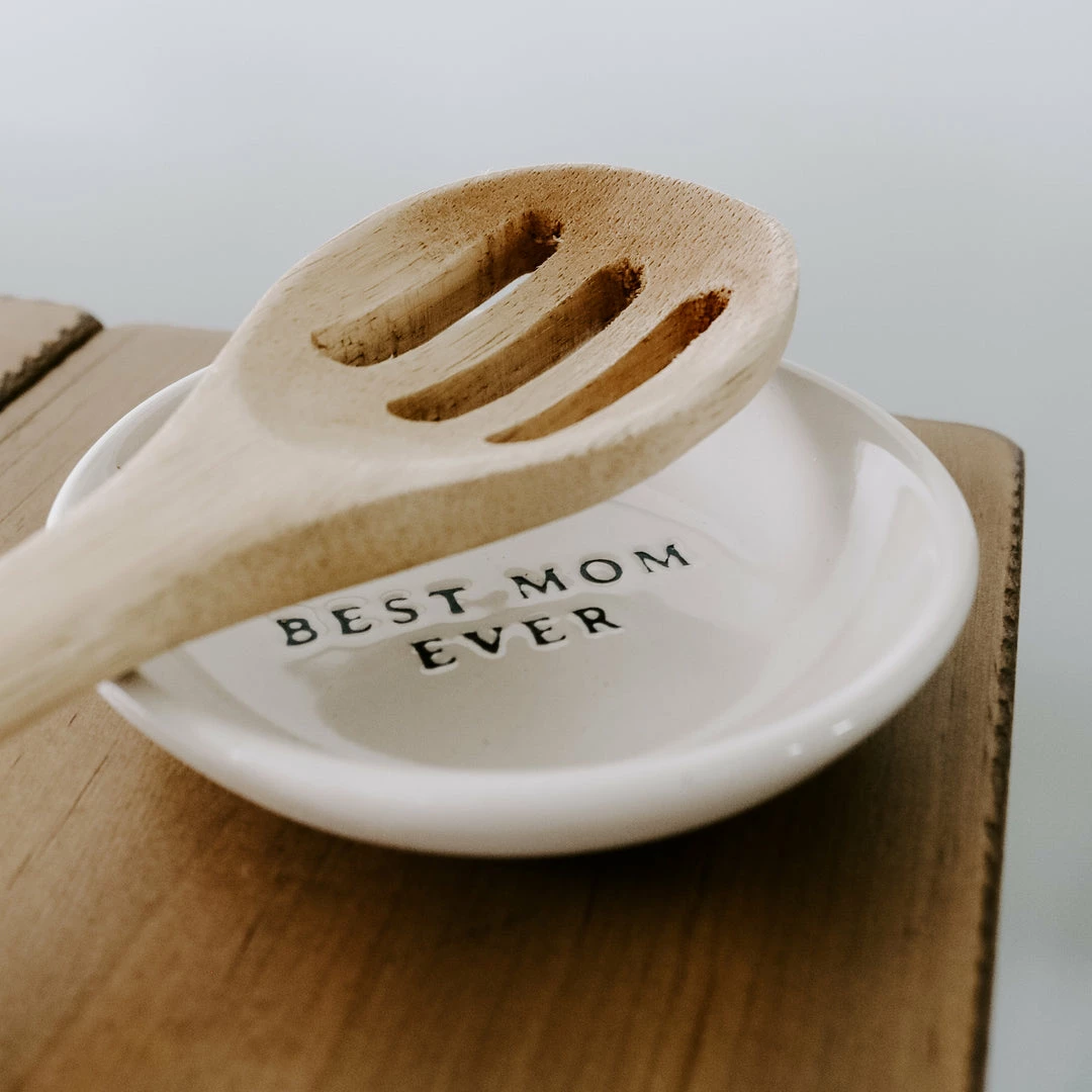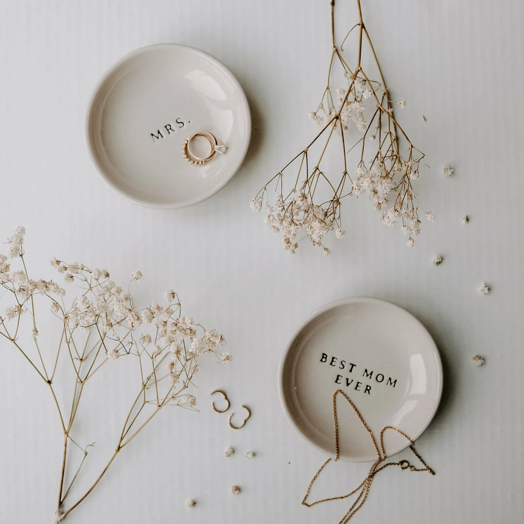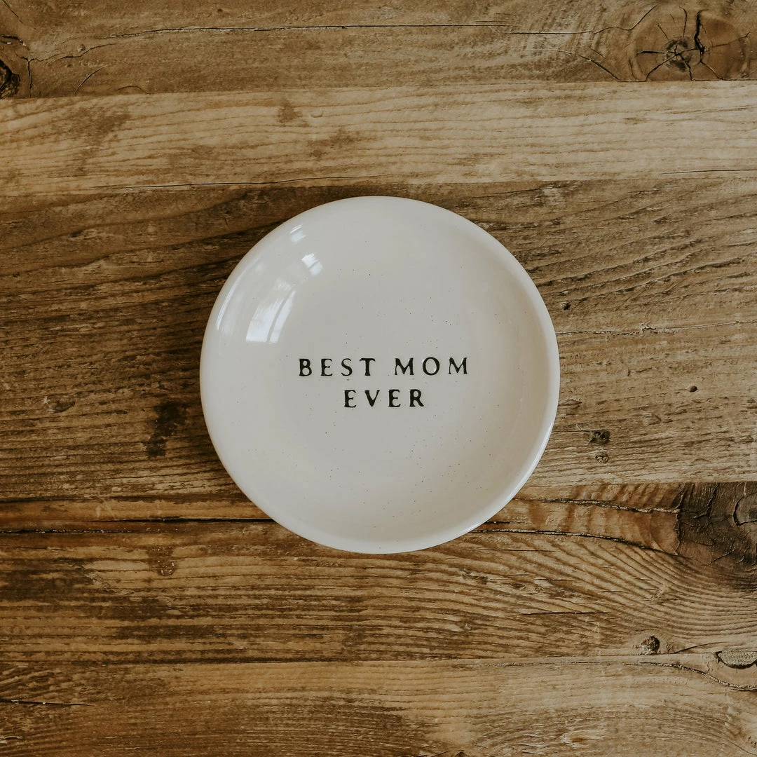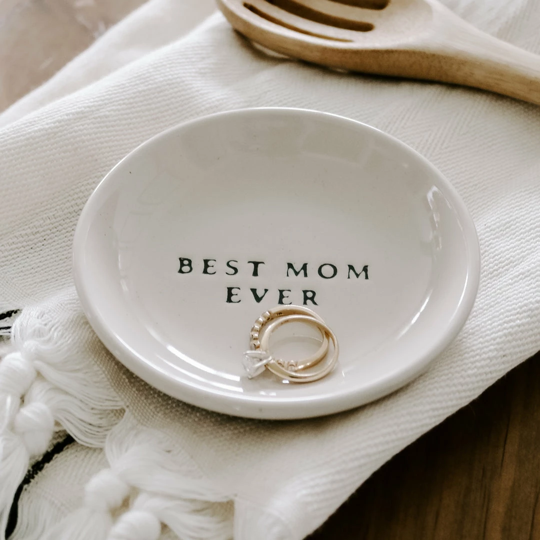 Every momΒ will swoon over their new Best Mom Ever Jewelry Dish! OurΒ stoneware trinket tray is great for placing her wedding ring, earrings and more to keep them in a safe place. The neutral color is perfect for every office, bathroom or bedroom! This beautifulΒ tray also makes a great gift for Mother’s Day, birthday gift or Christmas gift!