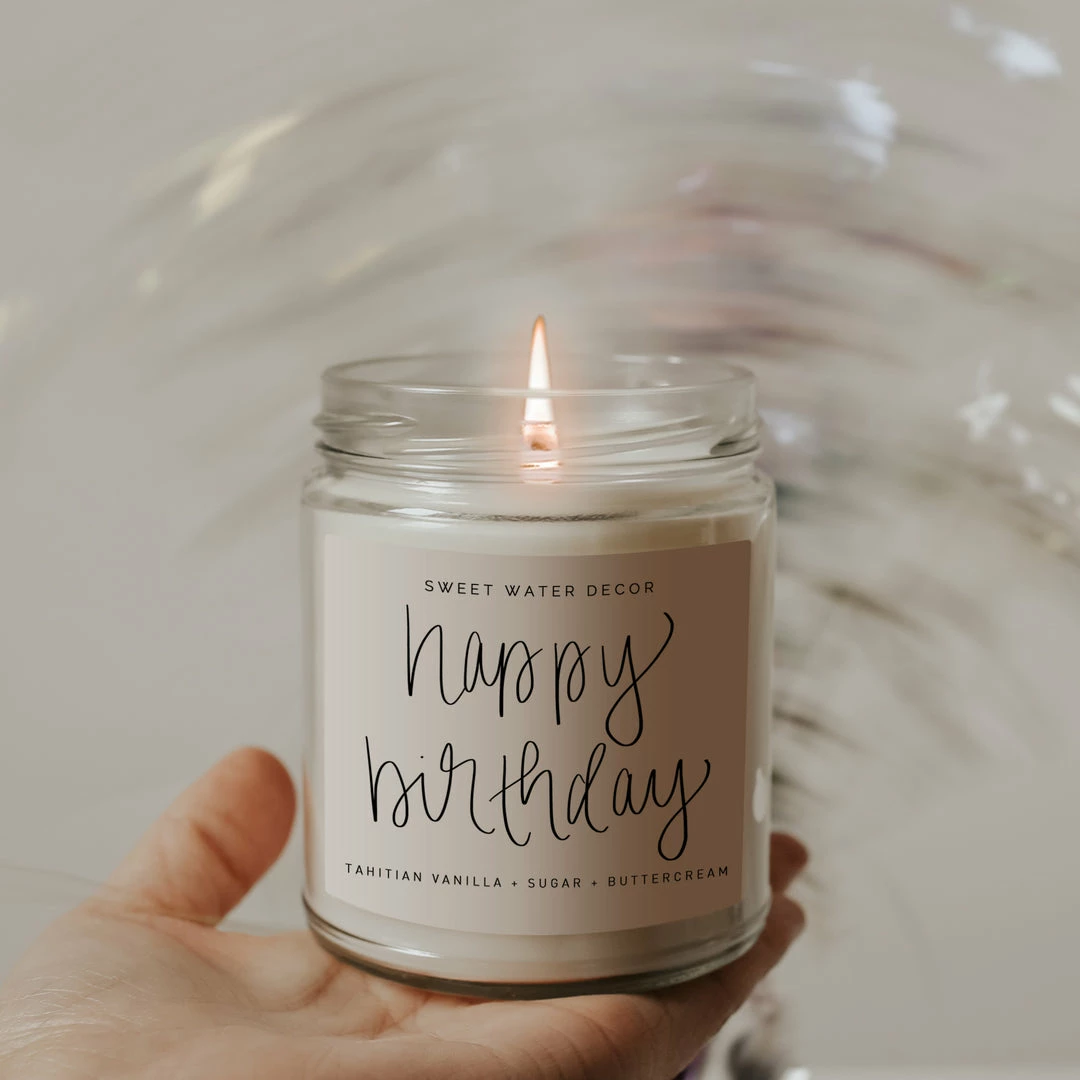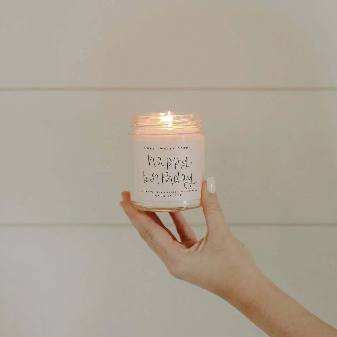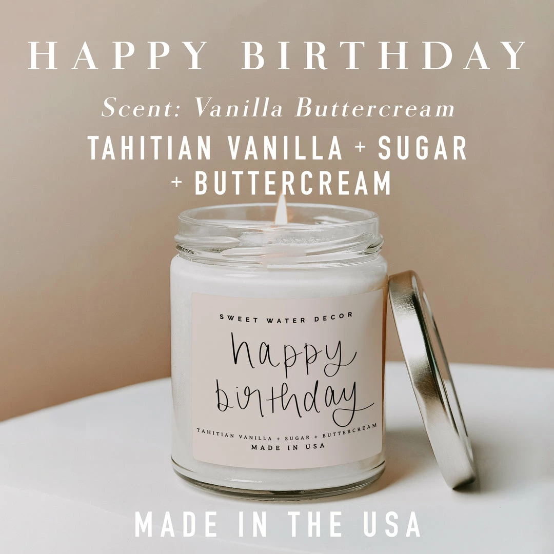 Our handmade Happy Birthday candle is the perfect birthday gift. This soy candle is vanilla buttercream and powdered sugar scented, sure to make their day sweet!