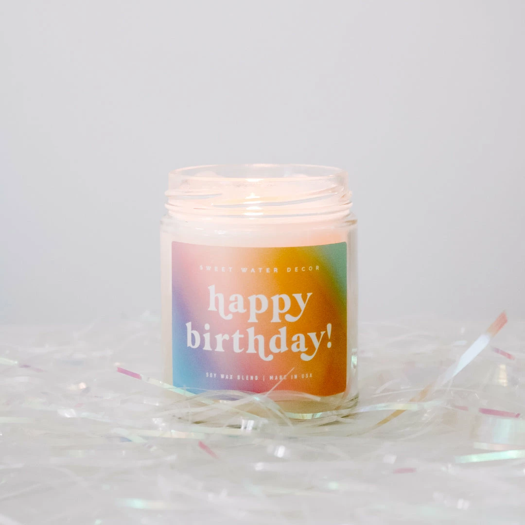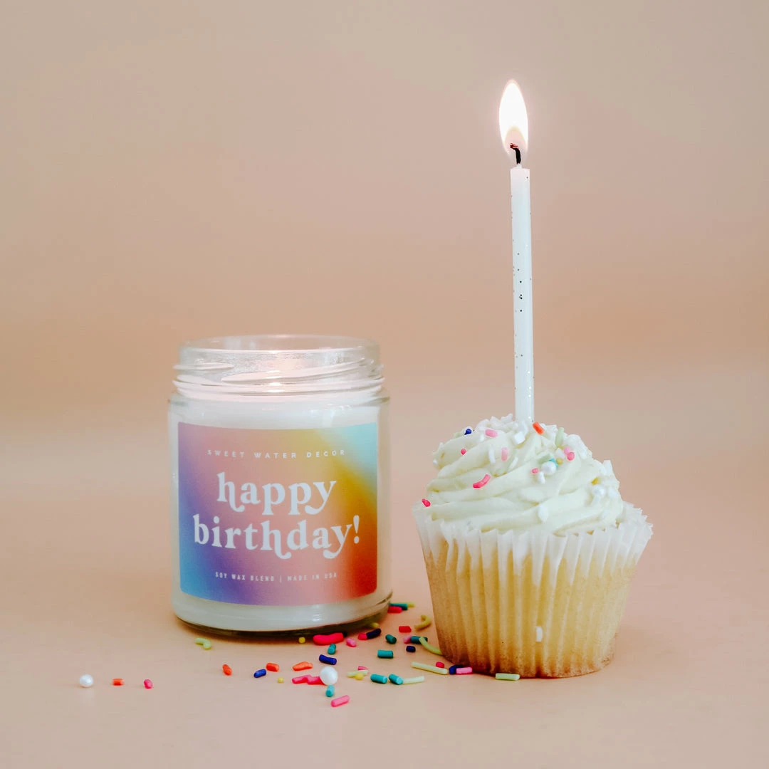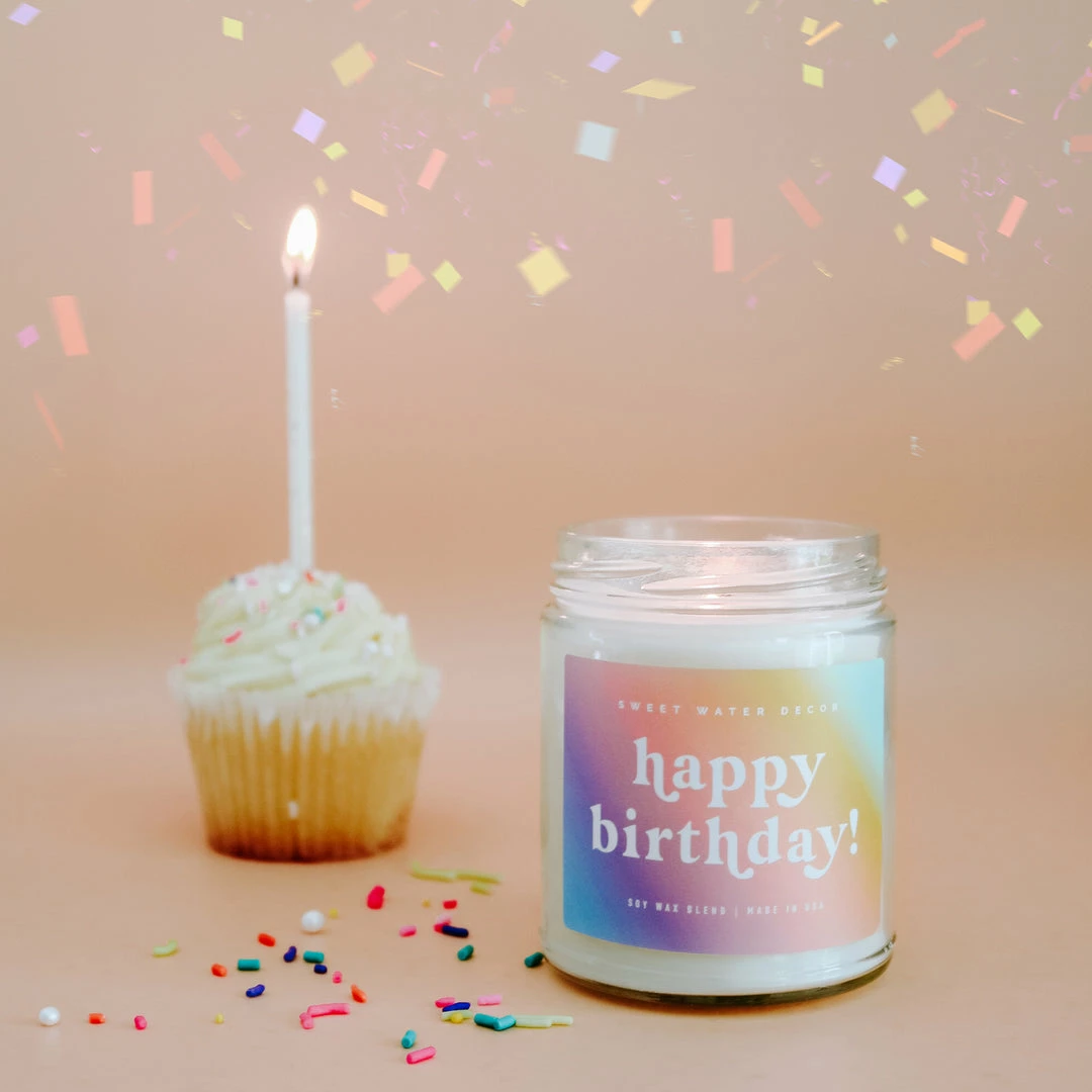 Our colorful and festive Happy Birthday candle is the perfect birthday gift. This soy candle is vanilla buttercream and powdered sugar scented, sure to make their day sweet!