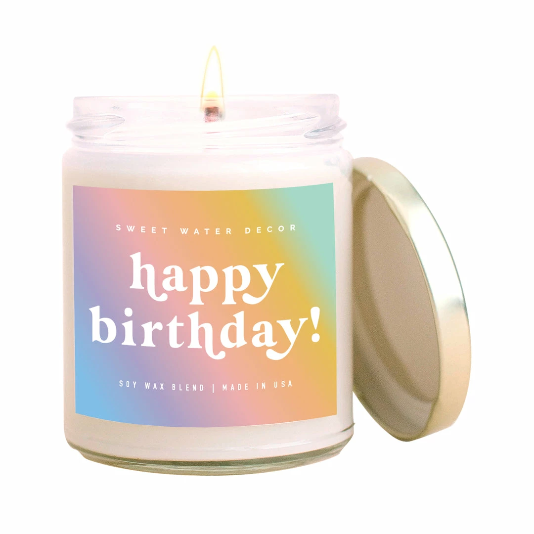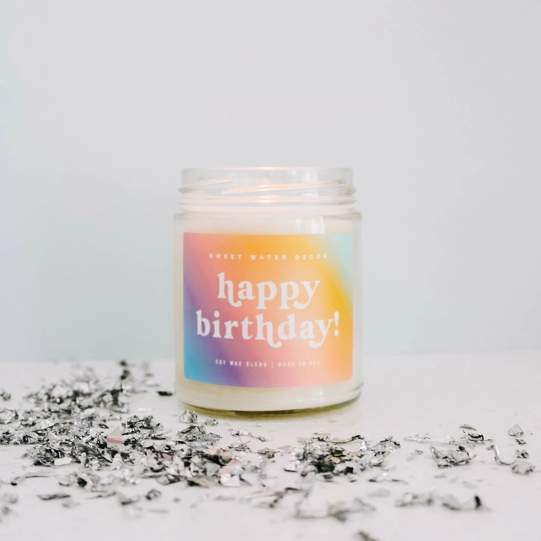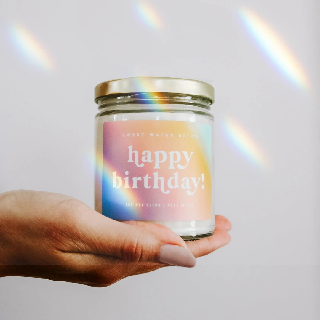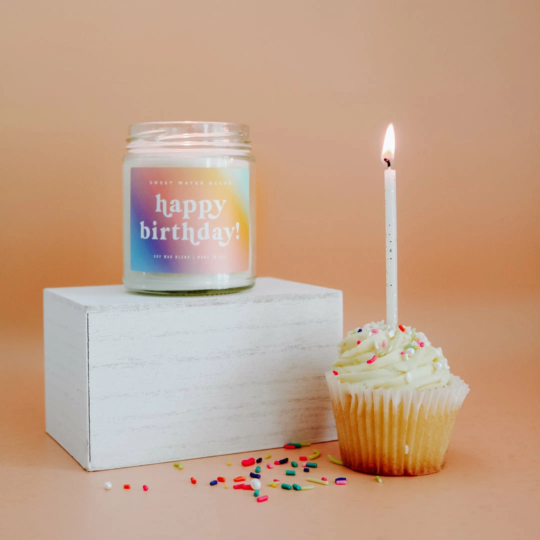 Our colorful and festive Happy Birthday candle is the perfect birthday gift. This soy candle is vanilla buttercream and powdered sugar scented, sure to make their day sweet!