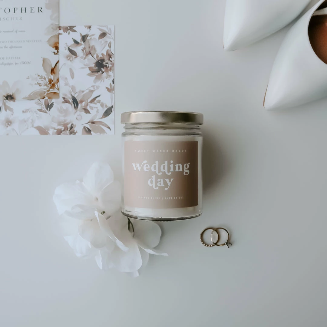 ο»ΏOur Wedding Day soy candle is exactly the scent you want wafting in the background of your big day. It features our signature Spa Day scent, which has calming notes of jasmine, sea salt, wood and cream. Buy it for yourself, or gift it to your engaged BFF. It makes a wonderful wedding gift, engagement gift, and bridal shower gift!