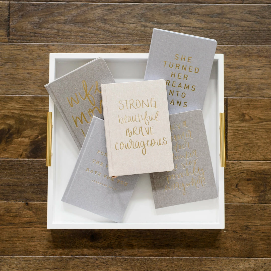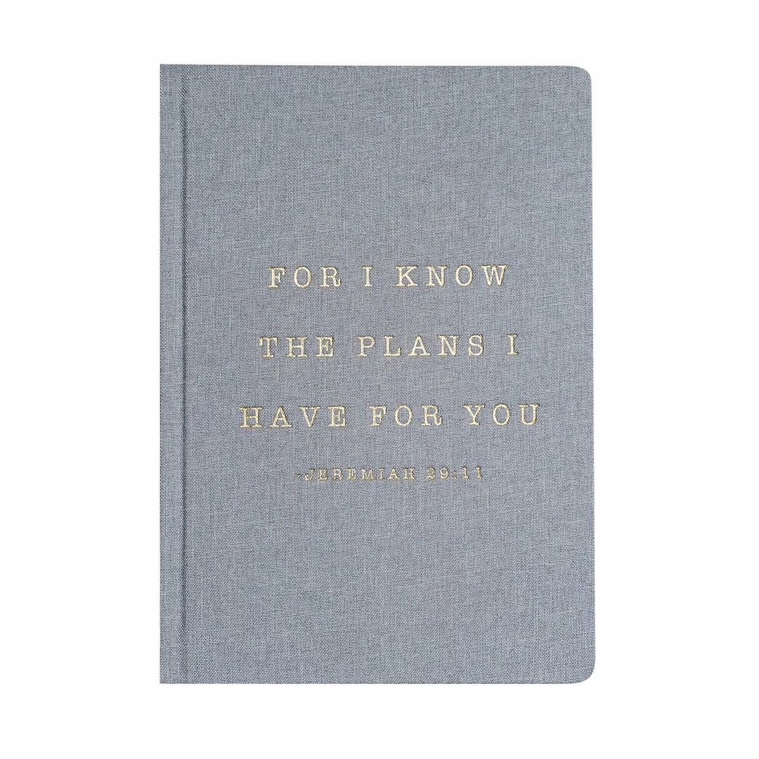 Write down all of your goals and dreams in our handΒ lettered For I Know The Plans I Have For You Jeremiah 29:11, CoolΒ Grey and Gold Fabric Journal!Β With this chic, stylish, easy to write on notebook, there’s no betterΒ place to jot down motivational notes, inspirational quotes, lists,Β and all of your great ideas!Β Perfect for work or school.Β This desk/office accessory makes a great gift!