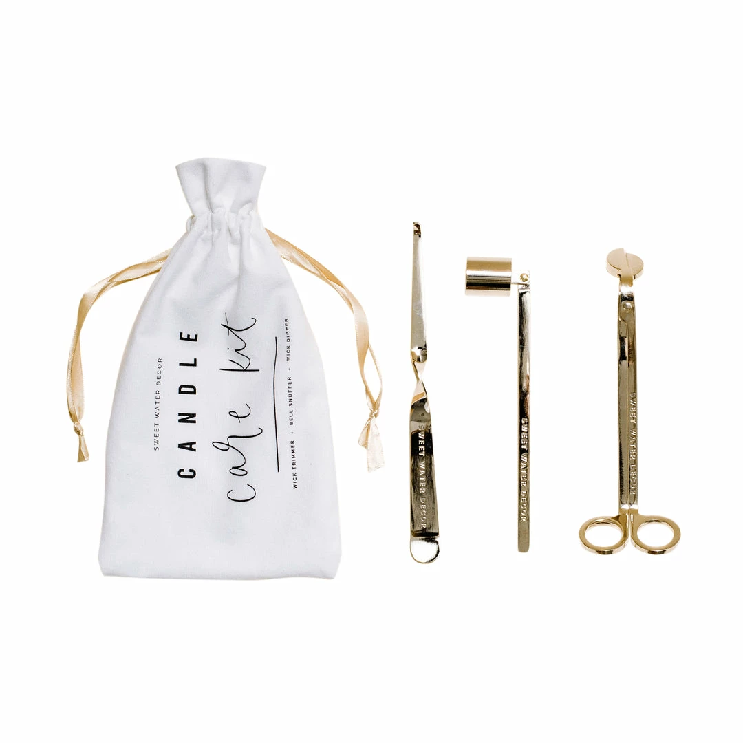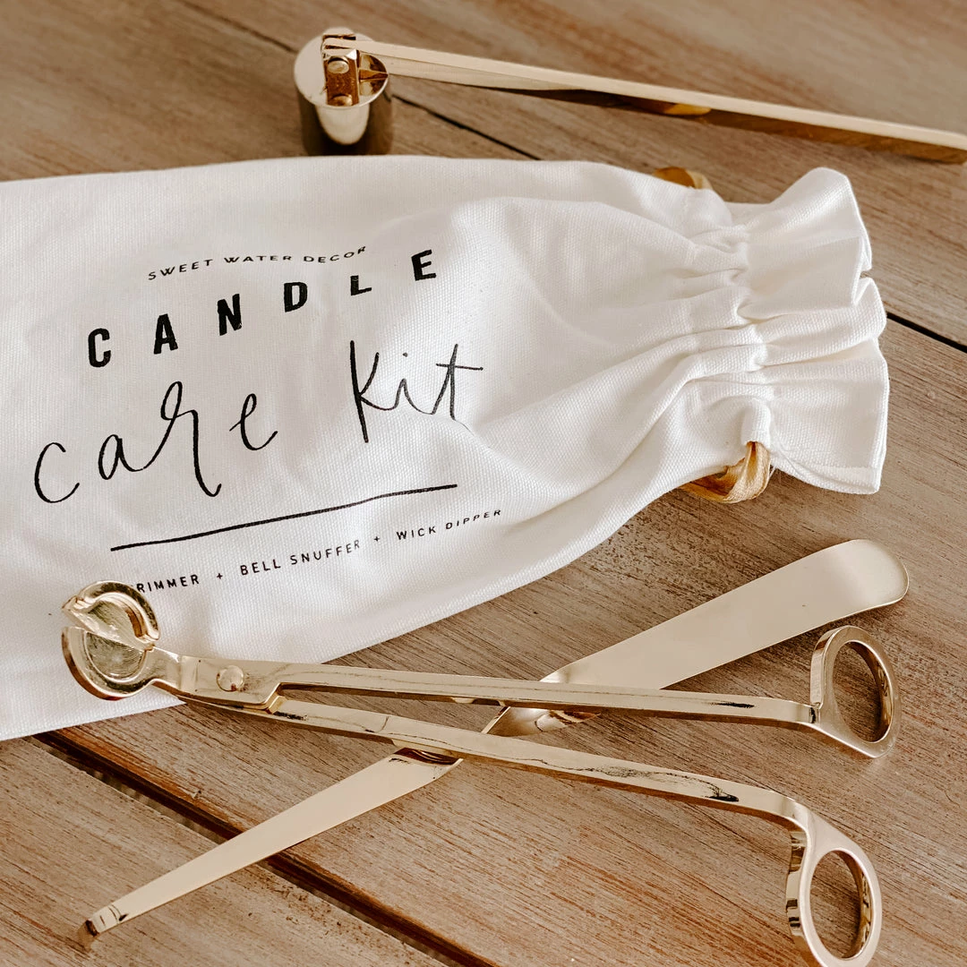 Proper candle care is essential to the longevity of everyΒ candle. Β Ensure the your candle has the best care with our candle careΒ kit, featuring wick scissors, wick dipper, and candle snuffer. Β Each kit arrives in a hand lettered bag for safe keeping.