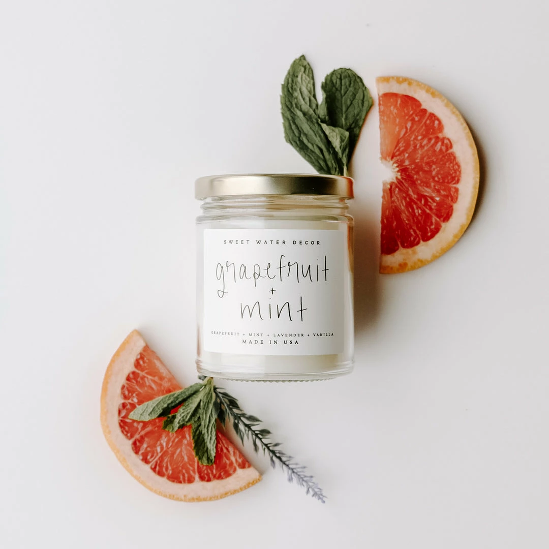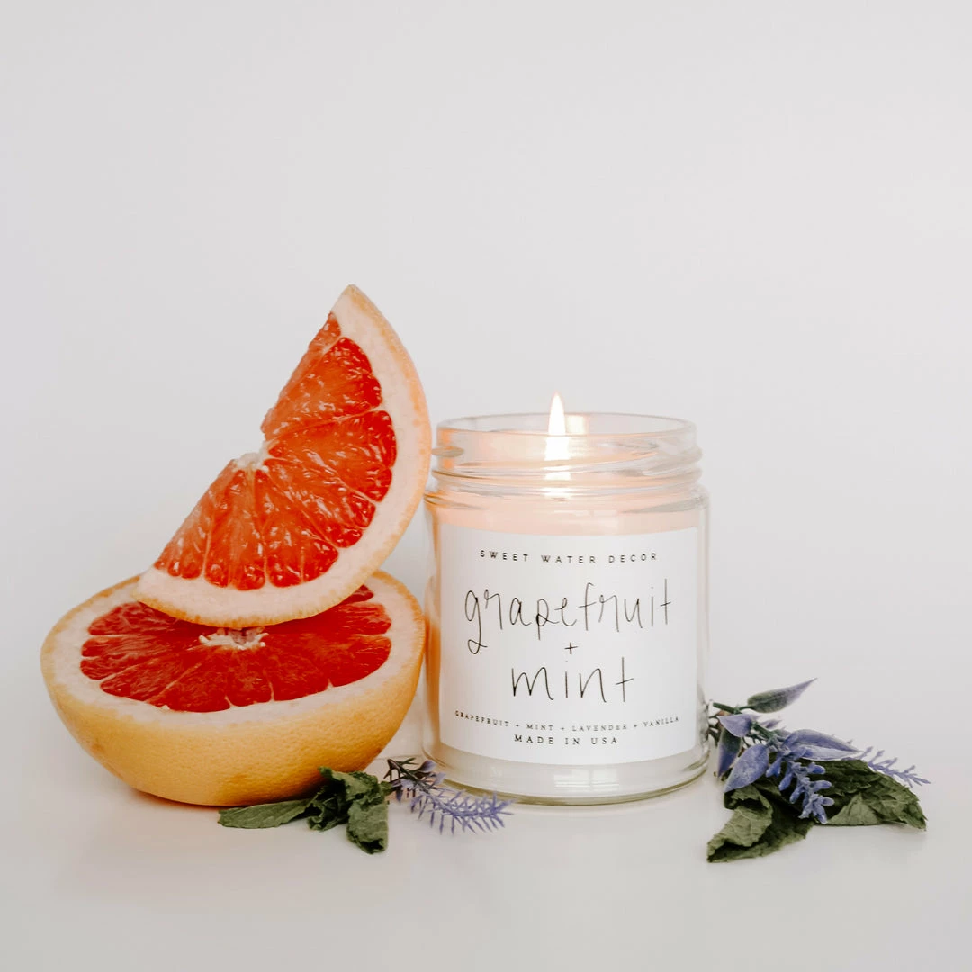 ο»ΏAllow yourself to indulge in self-care while burning our Grapefruit + Mint scented soy candle.Β The refreshing candle has a calming and grounding fragrance that comes from the unique combination of essential oils in the candle including grapefruit, mint, lavender, and vanilla. This candle makes a wonderful giftΒ for anyone in your life that you know could use some pampering.