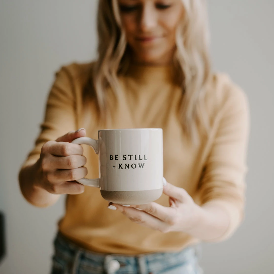 This will instantly become yourΒ new favorite coffee mug! Sip your coffee or tea every morning out of our Be Still + Know Stoneware Coffee Mug and gain the energy to tackle your busy day. Makes a great Christian gift for encouragement or Christmas, Mother’s Day and every other holiday in between.