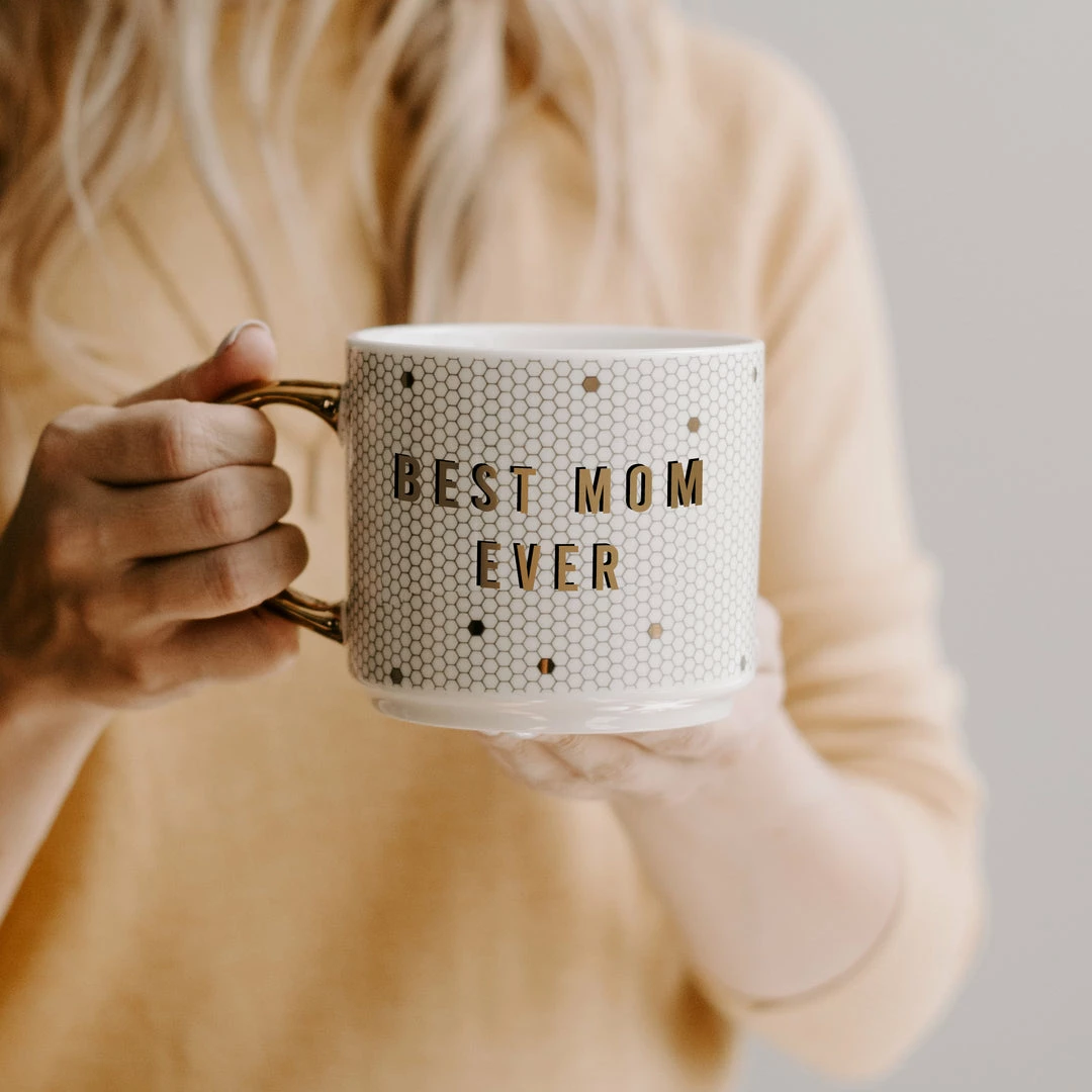 For the selfless mama in your life (including yourself!) who needs something both beautiful and practical – give her our Best Mom Ever Tile Coffee Mug. Featuring real gold embellishing on the handle and sentimental Best Mom Ever design, this mug is a great Mother’s Day Gift, Baby Shower Gift, Christmas Gift and more for the world’s best mom!Β Β
