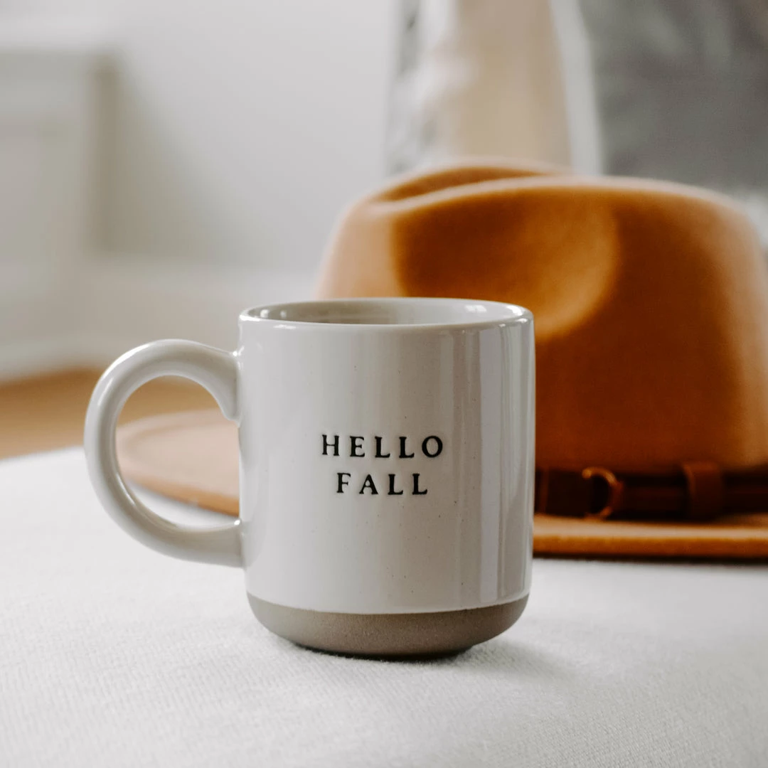 Who doesn’t love fall?Β Get ready to bring in your favorite season with our Hello FallΒ Stoneware Mug!Β It’s rustic style is perfect to blend right in with your farmhouse decor!Β The 14 oz size is the best size coffee cup to cozy up with a hot beverage on a chilly fall night.Β Our rustic mugs make great gifts for birthdays, Christmas or for any fall lover in your life!Β Your PSL will taste so much better out of your new fall mug!