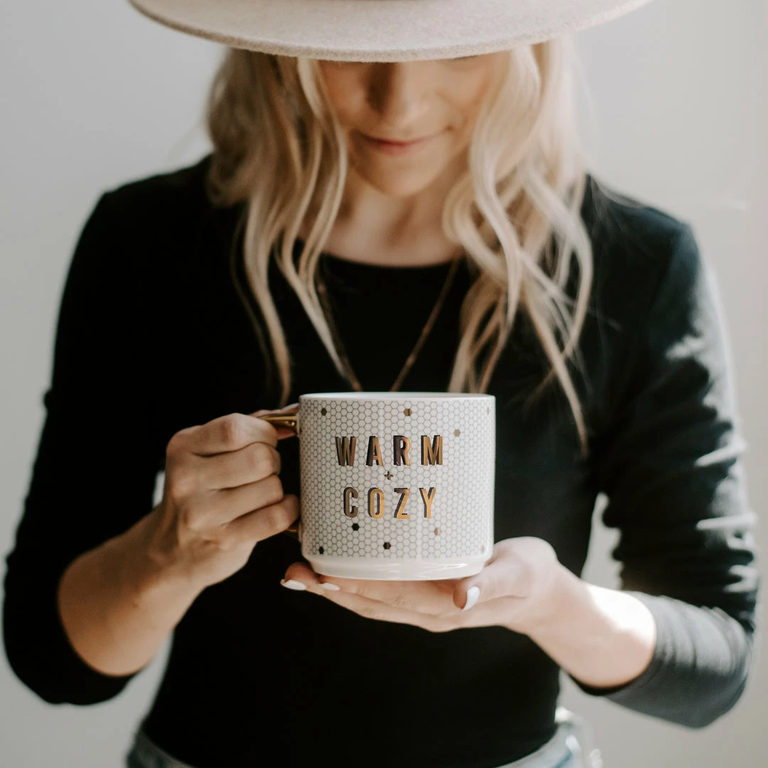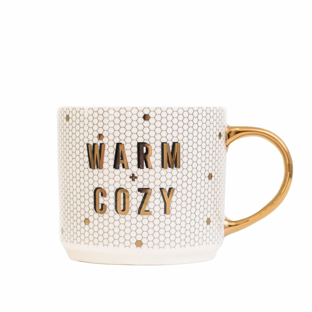 With real gold embellishing on the handle and design, ourΒ Warm + Cozy Tile Coffee Mug is designedΒ to enhance your coffee drinking experience. This will become your new favorite holiday coffee mug while decorating the tree or wrapping presents! This mug is a great birthday gift or Christmas gift.