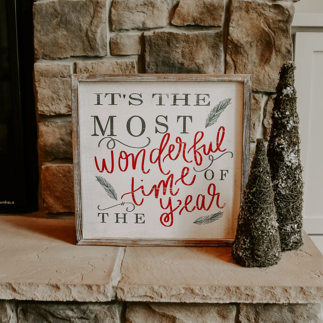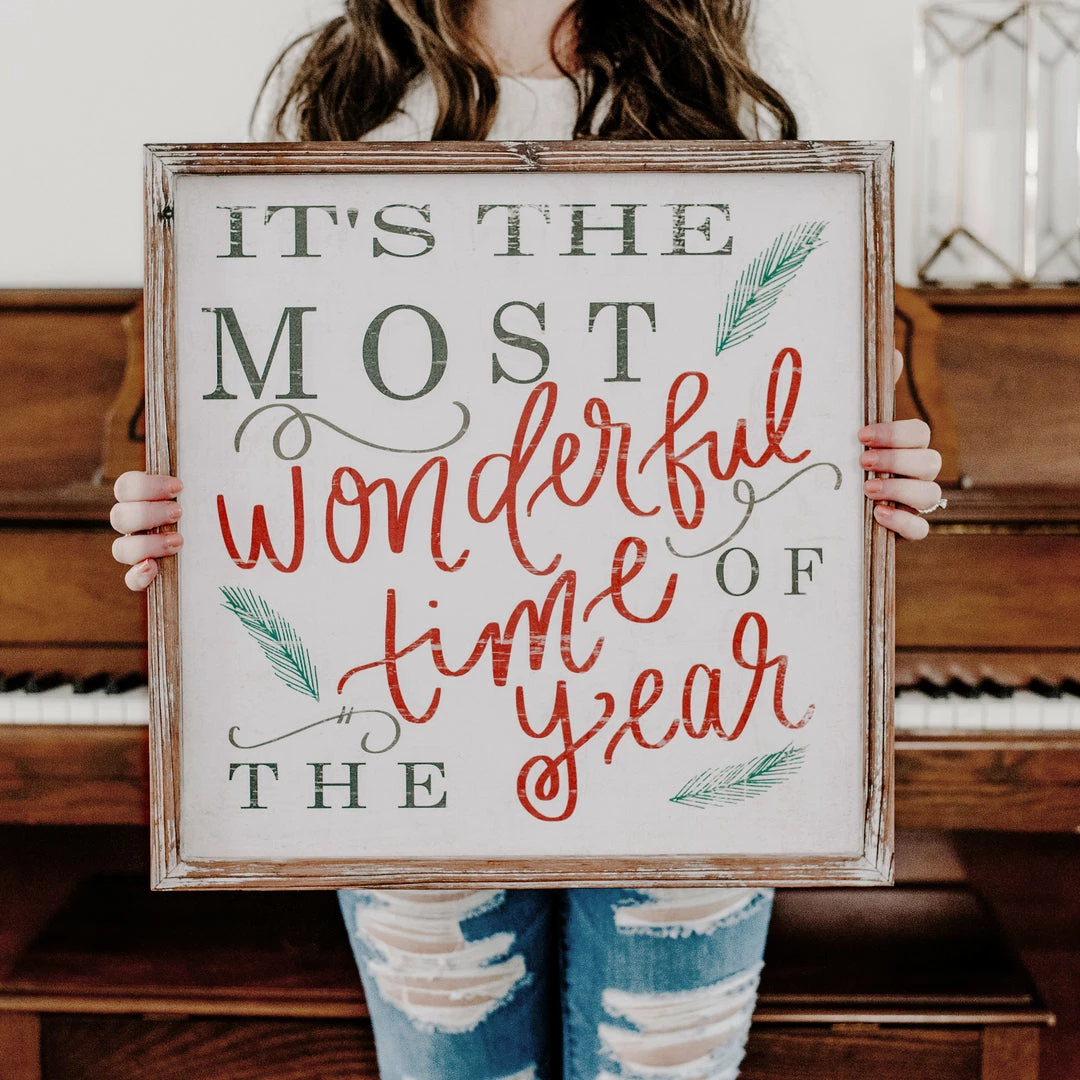 Decorate for The Most Wonderful Time Of The Year with our holiday sign.Β ThisΒ hand lettered rustic sign is painted with a beautiful cream paint and is handmade – each sign is unique.