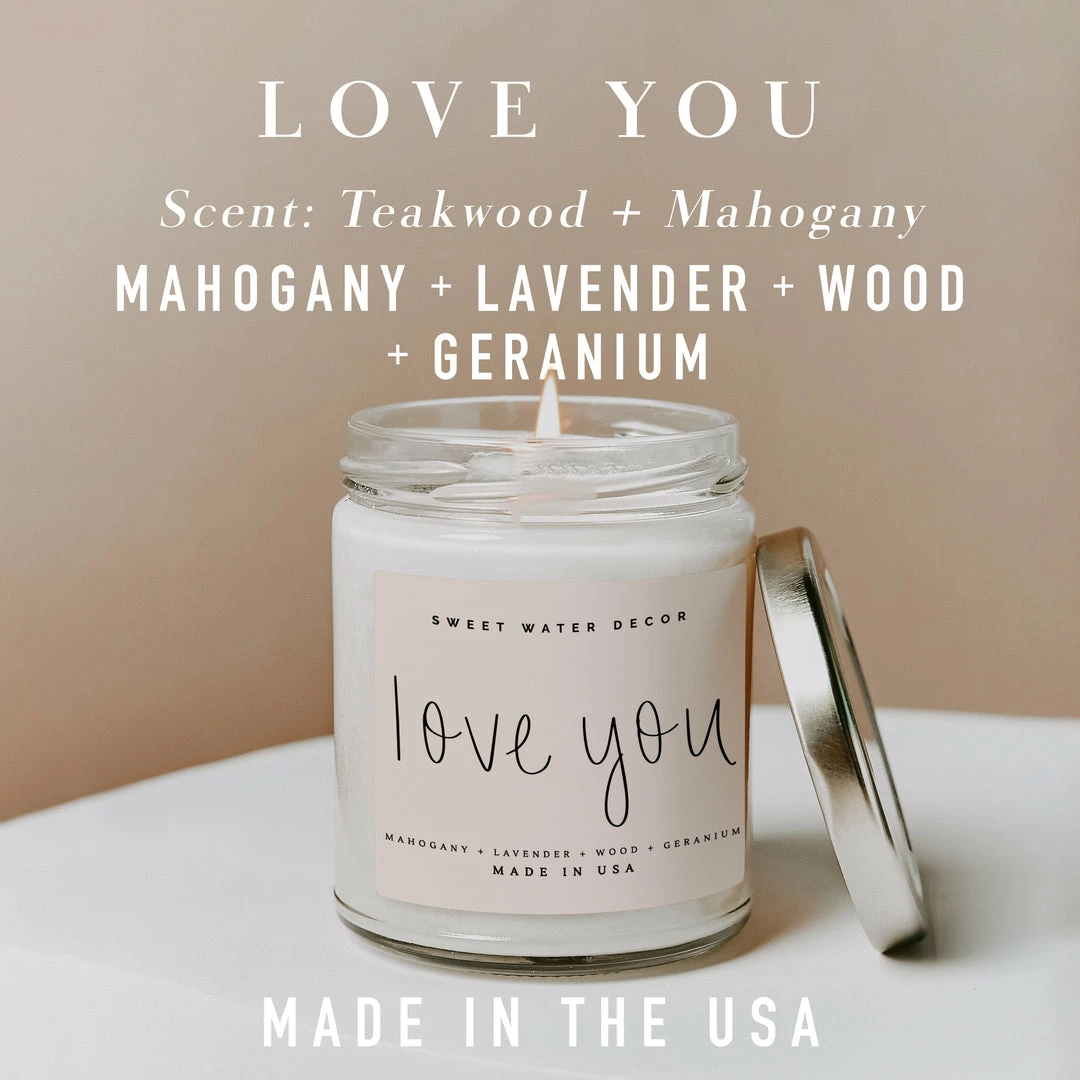Whether you’re celebrating Valentine’s Day or just need the perfect way to tell your significant other those special words this candle will whisk away your senses and knock your loved one off of their feet. Love You is warm and inviting and is the perfect blend of masculine and feminine.Β Pair our Love You candle with our Red Safety Matches for the perfect Valentine’s Day gift (shop here:Β Β Red Small Safety Matches – Apothecary Jar β Sweet Water Decor)Β