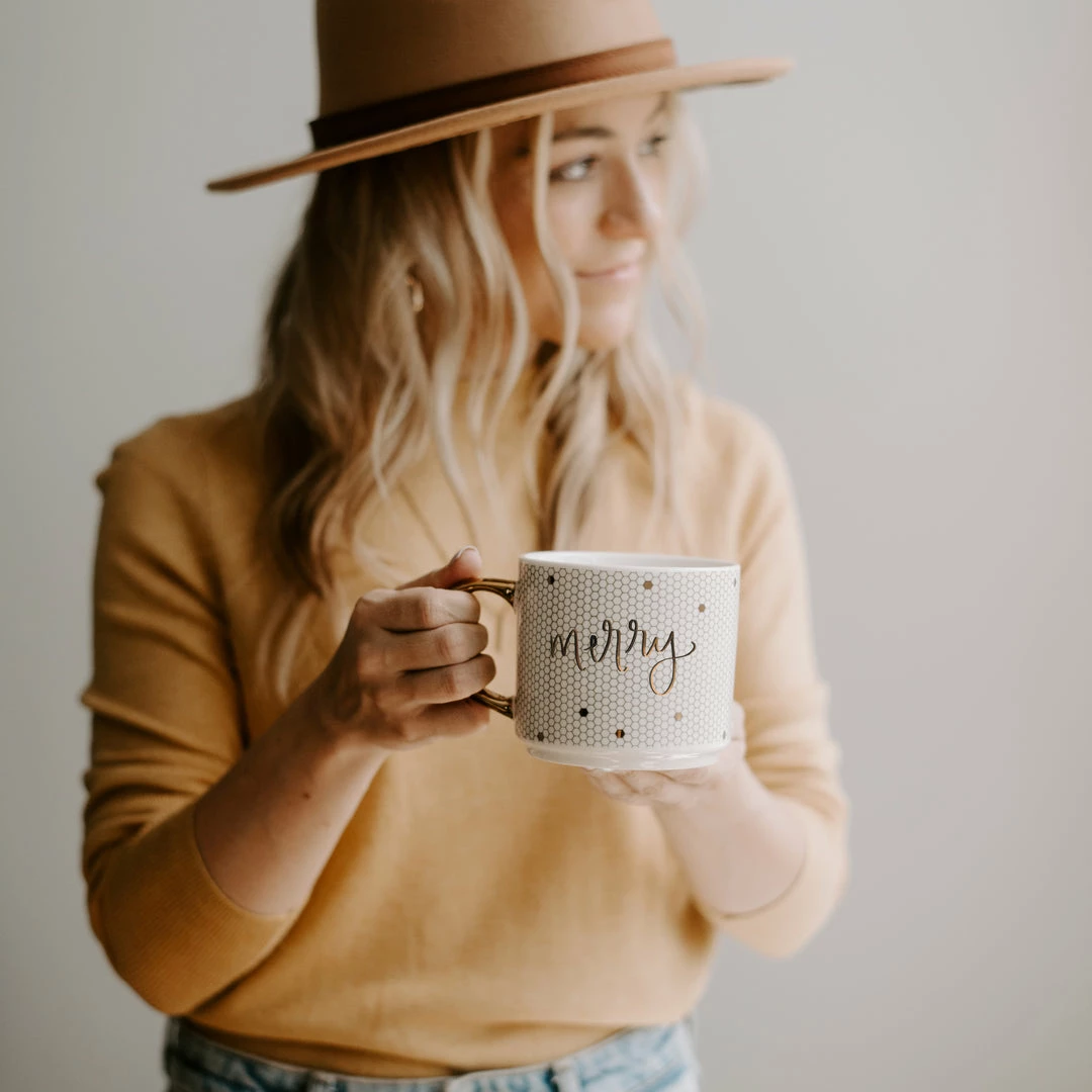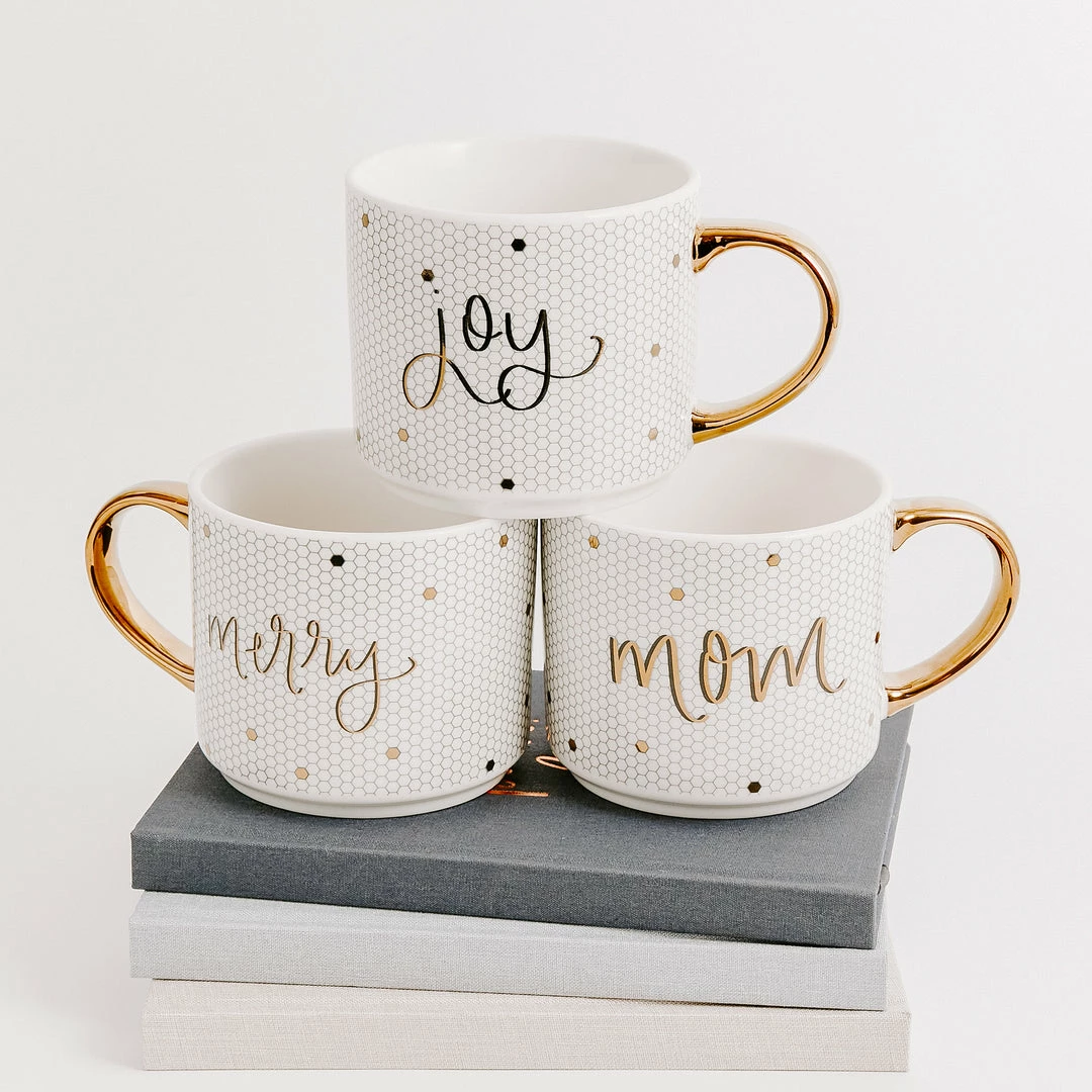 With real gold embellishing on the handle and design, our Merry Tile Coffee Mug is designedΒ to enhance your coffee drinking experience. This will become your new favorite holiday coffee mug while decorating the tree or wrapping presents! This mug is a great birthday gift or Christmas gift.