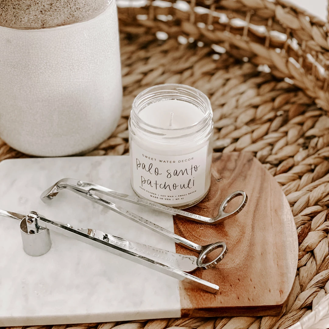 Proper candle care is essential to the longevity of everyΒ candle. Β Ensure the your candle has the best care with our candle careΒ kit, featuring wick scissors, wick dipper, and candle snuffer. Β Each kit arrives in a hand lettered bag for safe keeping.
