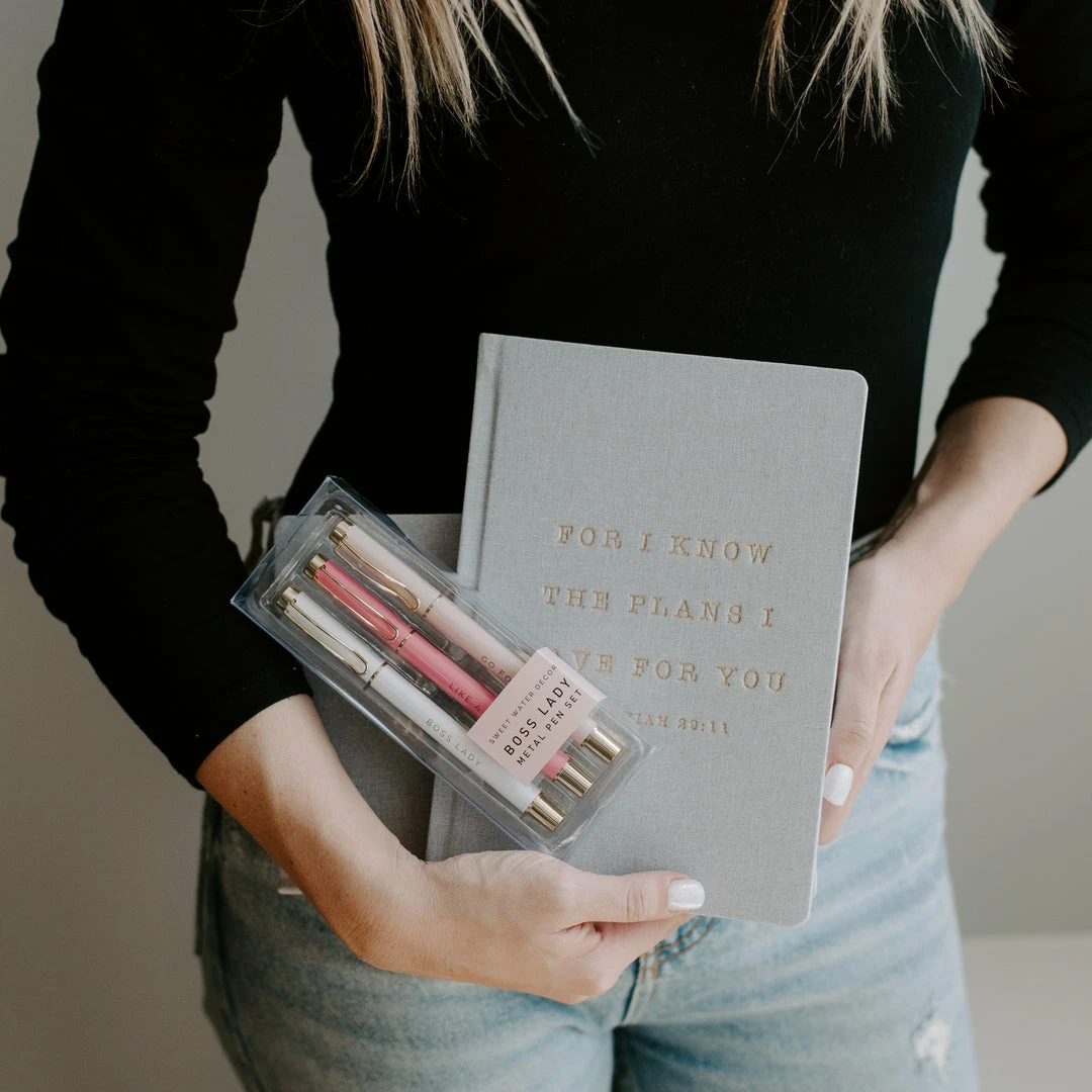 OurΒ Boss Lady Metal Pen set isΒ perfect for every boss lady! Chic, stylish, easy to write with, there’s no better way to jot down your dreams and goals!Β A great gift for every boss, your best friend who could use encouragement to seize the day or tackle that big project, and especially for yourself!Β