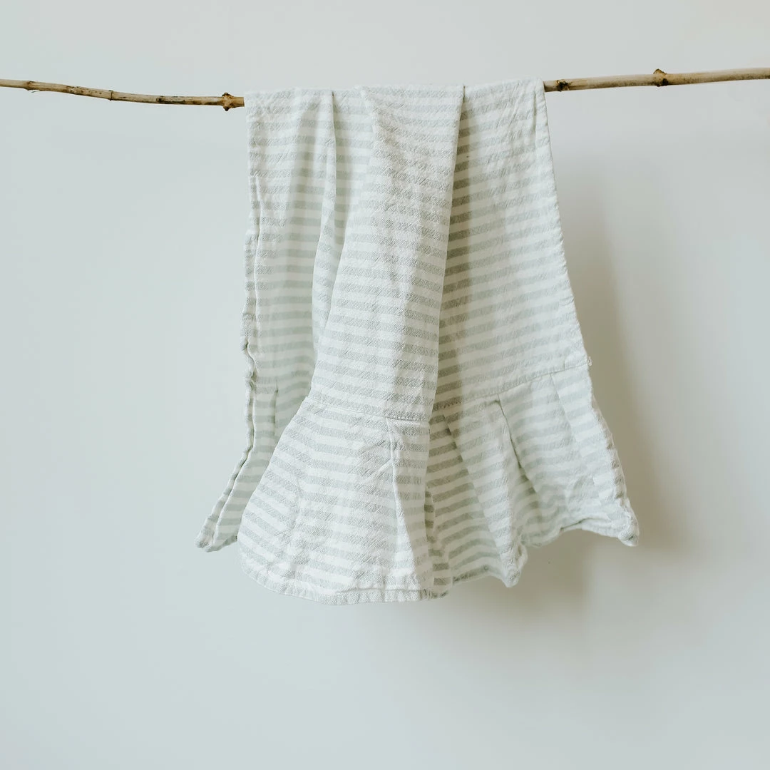 Our Striped Tea Towel with Ruffles will be the perfect addition to your farmhouse decor.Β It’s stylish and functional to be a kitchen or bathroom hand towel.Β Β