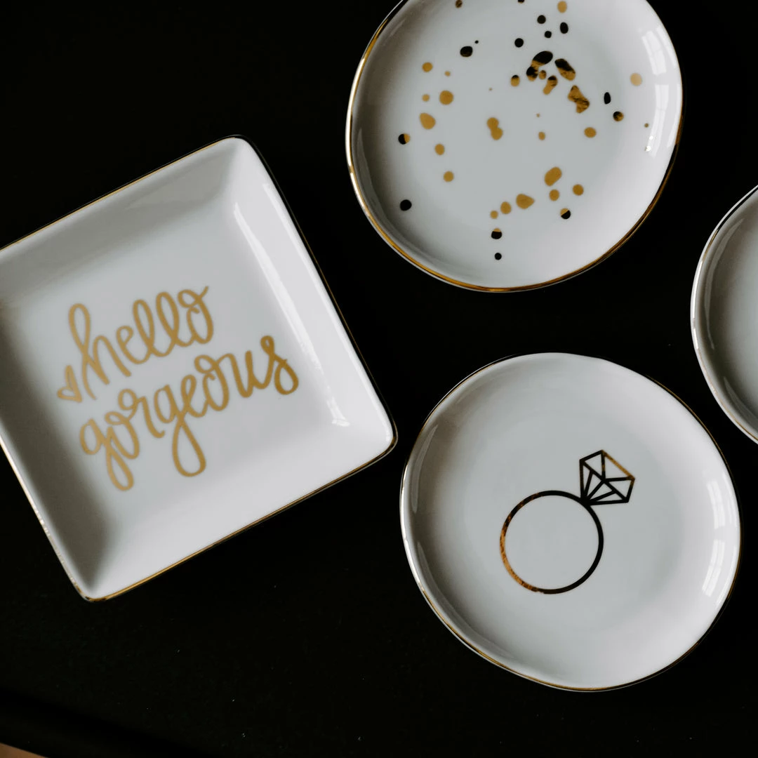 Organize your jewelry in style with our White Gold Speckled Jewelry Dish. This beautiful white trinket tray is the perfect addition to anyΒ room in your home. The gold foil details add a touch of chic glam, making it easy to dress up any space!