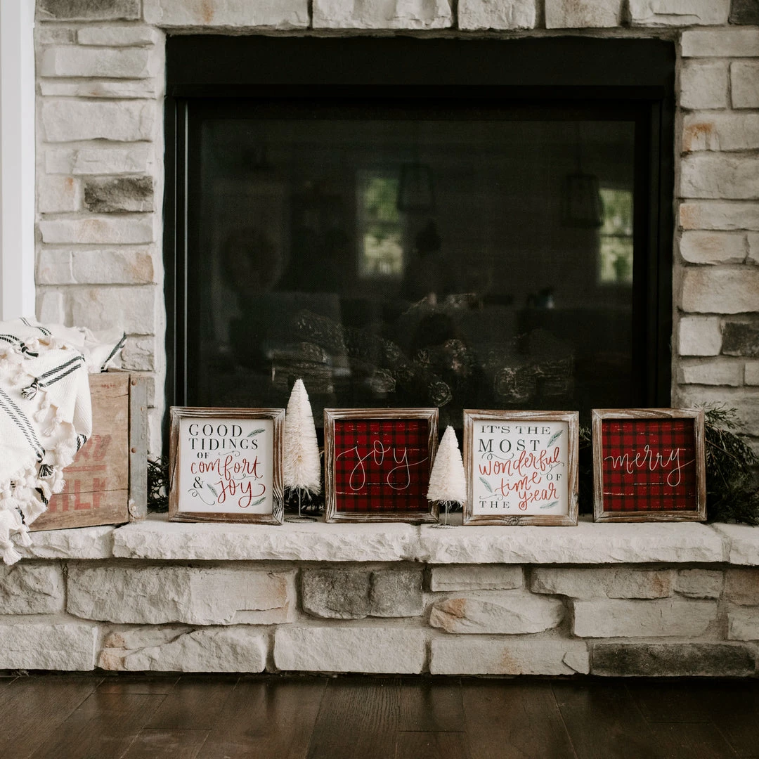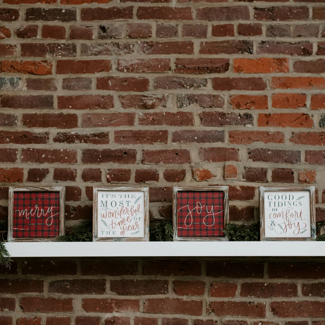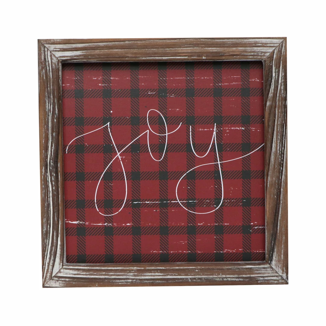 Decorate for the holidays with our JoyΒ plaid woodΒ sign.Β ThisΒ hand lettered rustic sign is painted with a beautiful red plaidΒ and is handmade – each sign is unique.